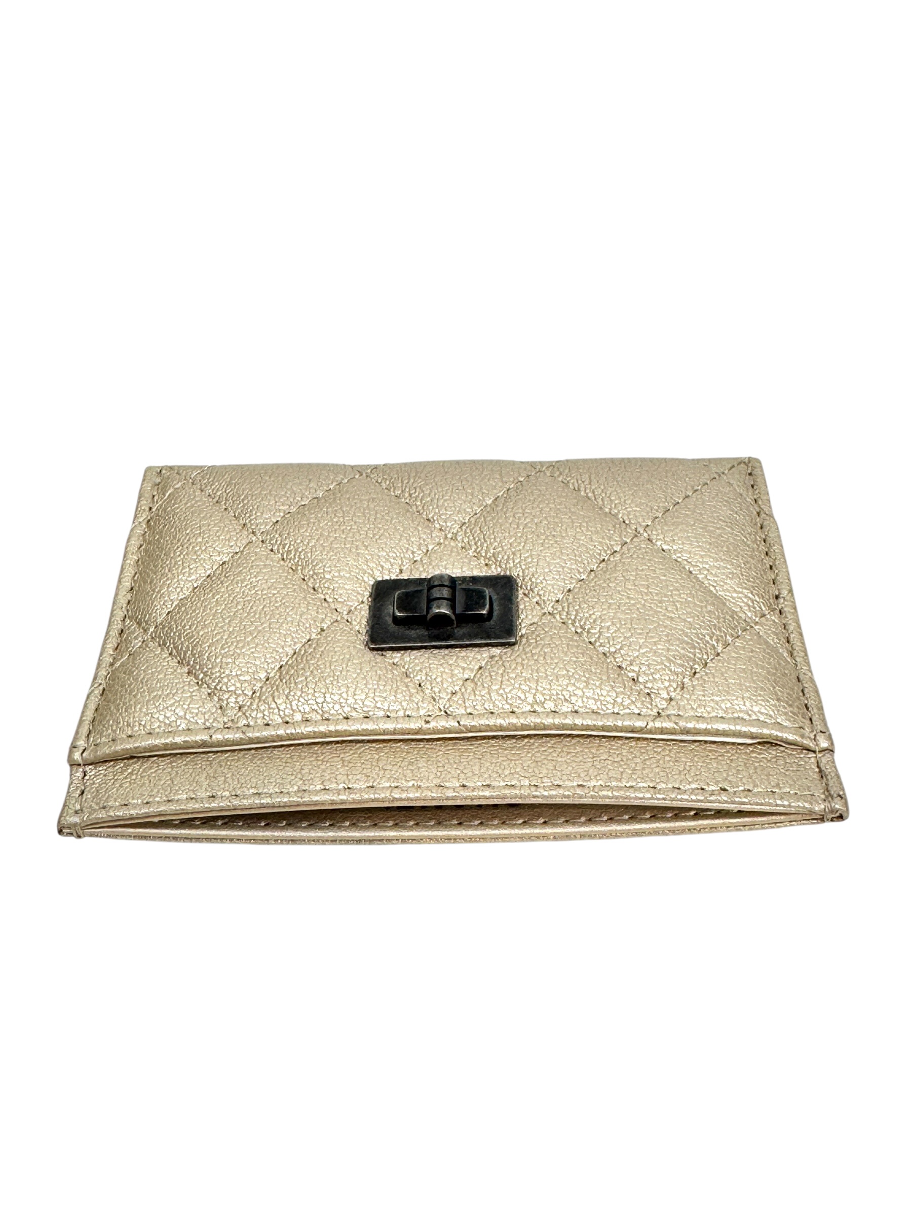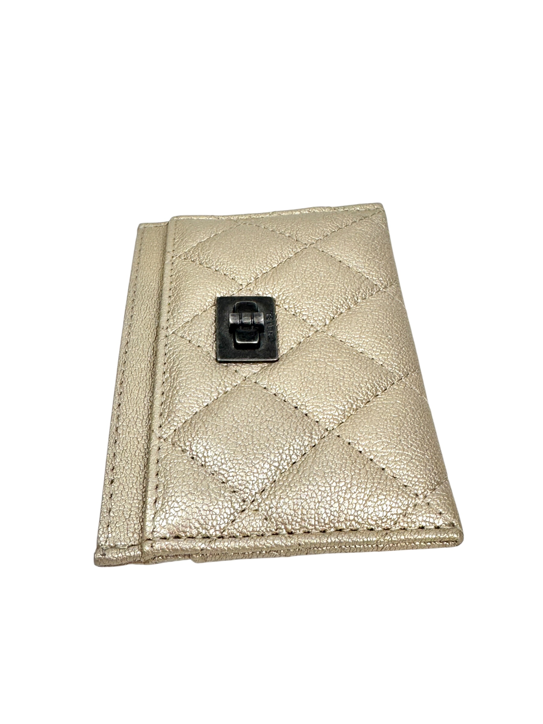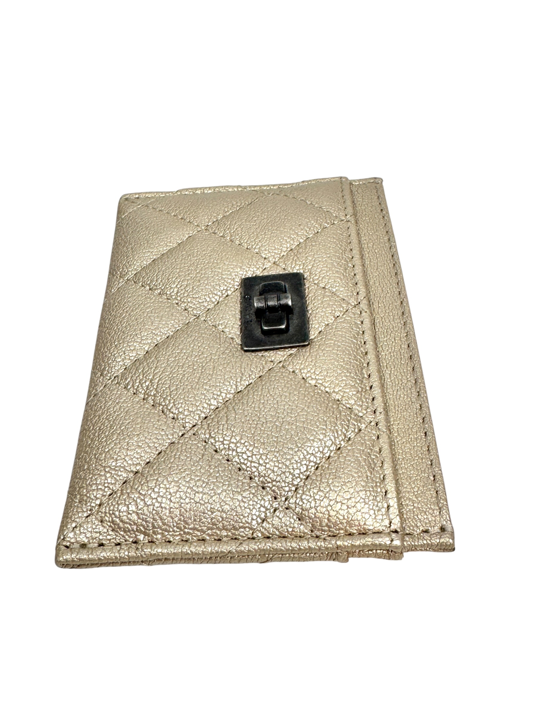 Porte cartes en cuir or pâle. Hologramme, carte.