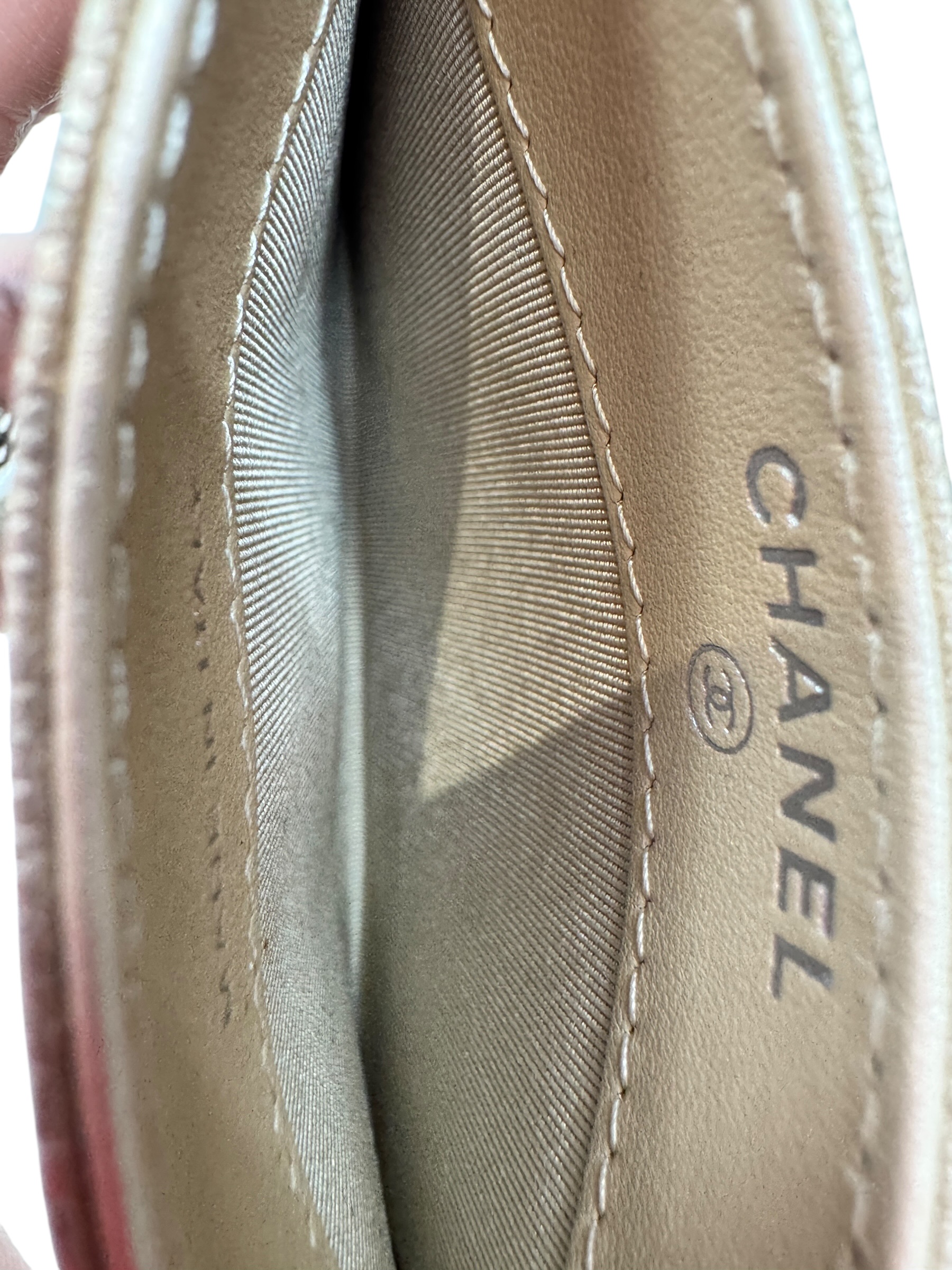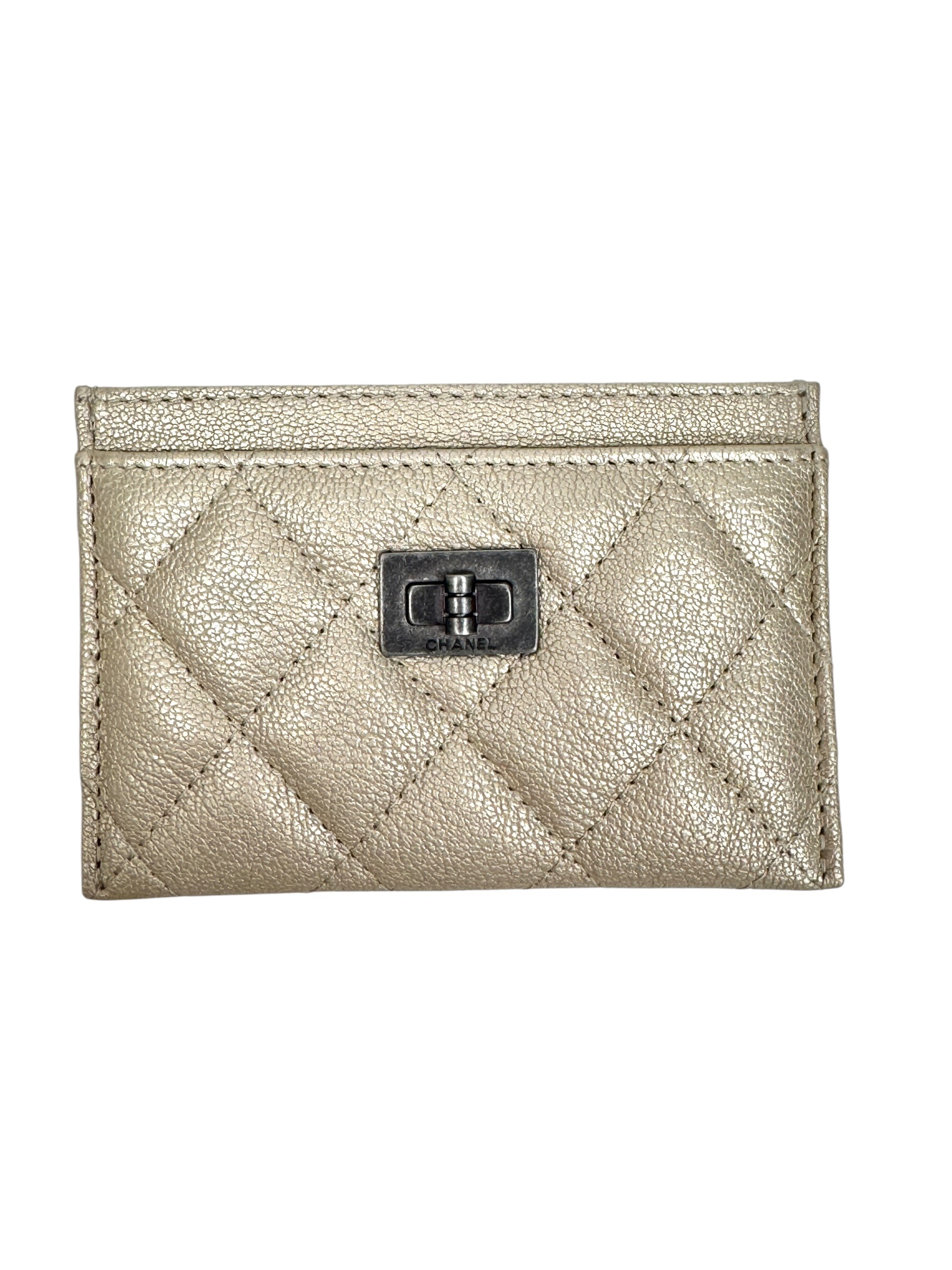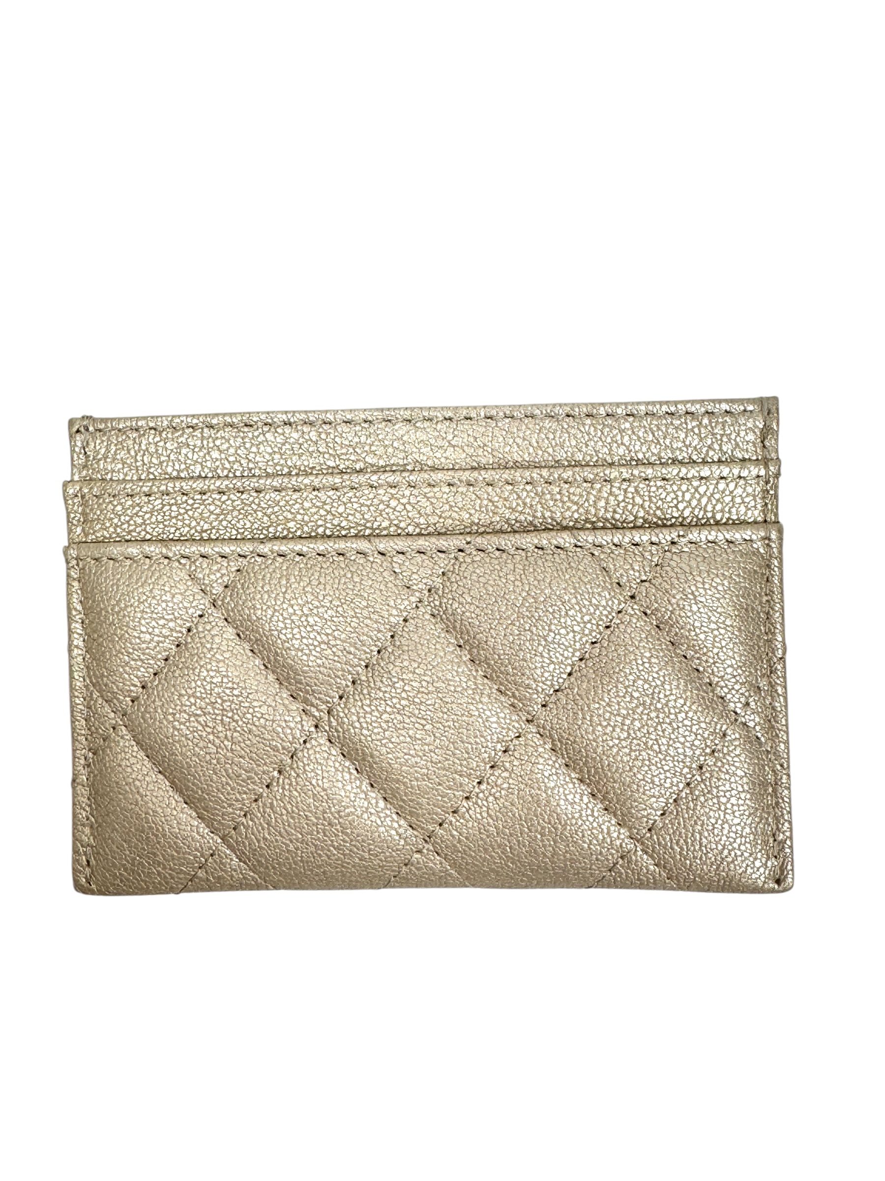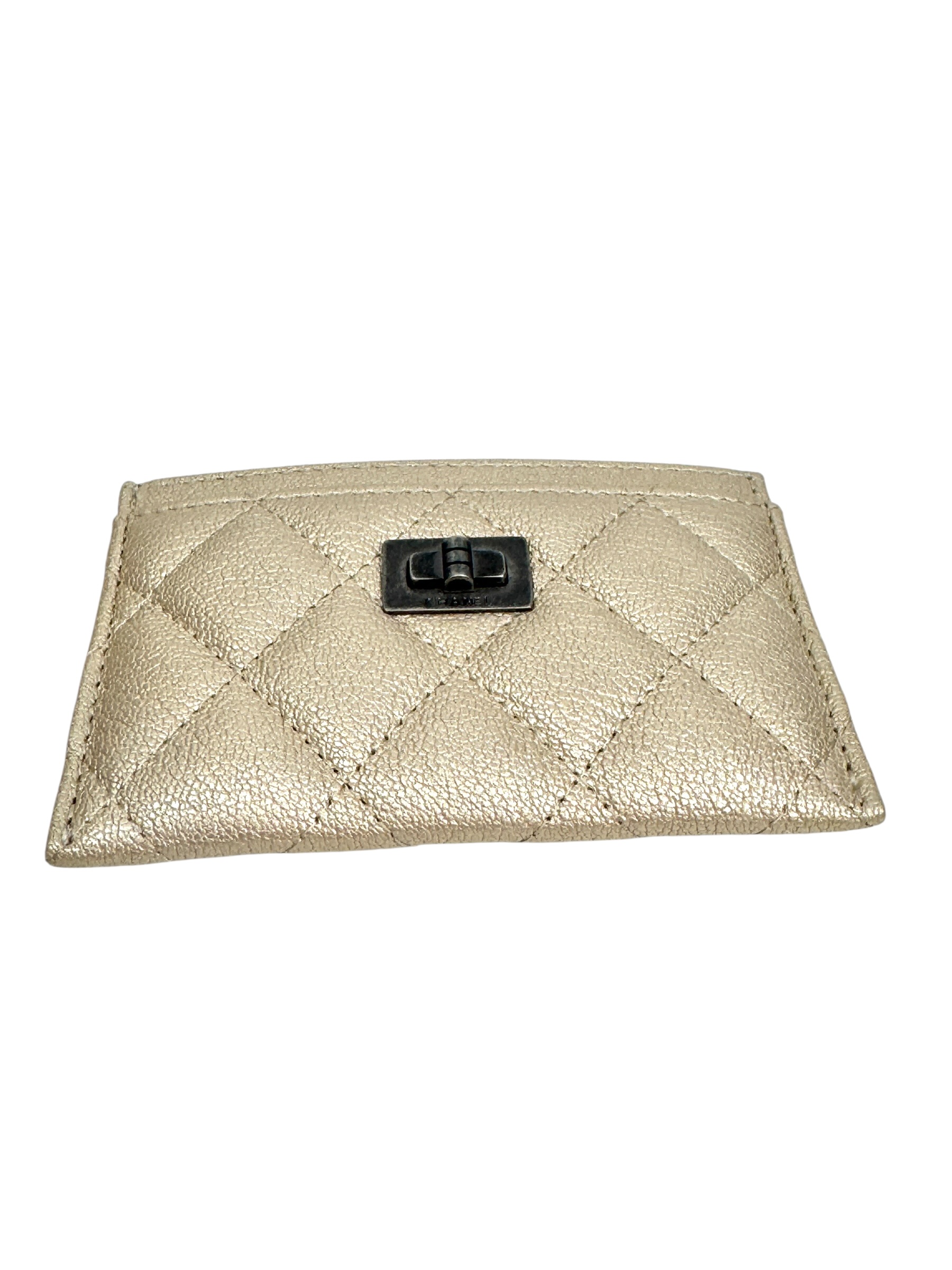 Porte cartes en cuir or pâle. Hologramme, carte.