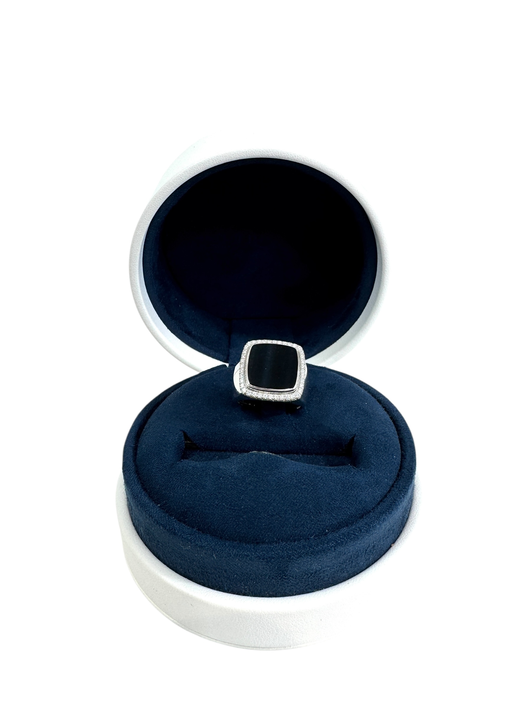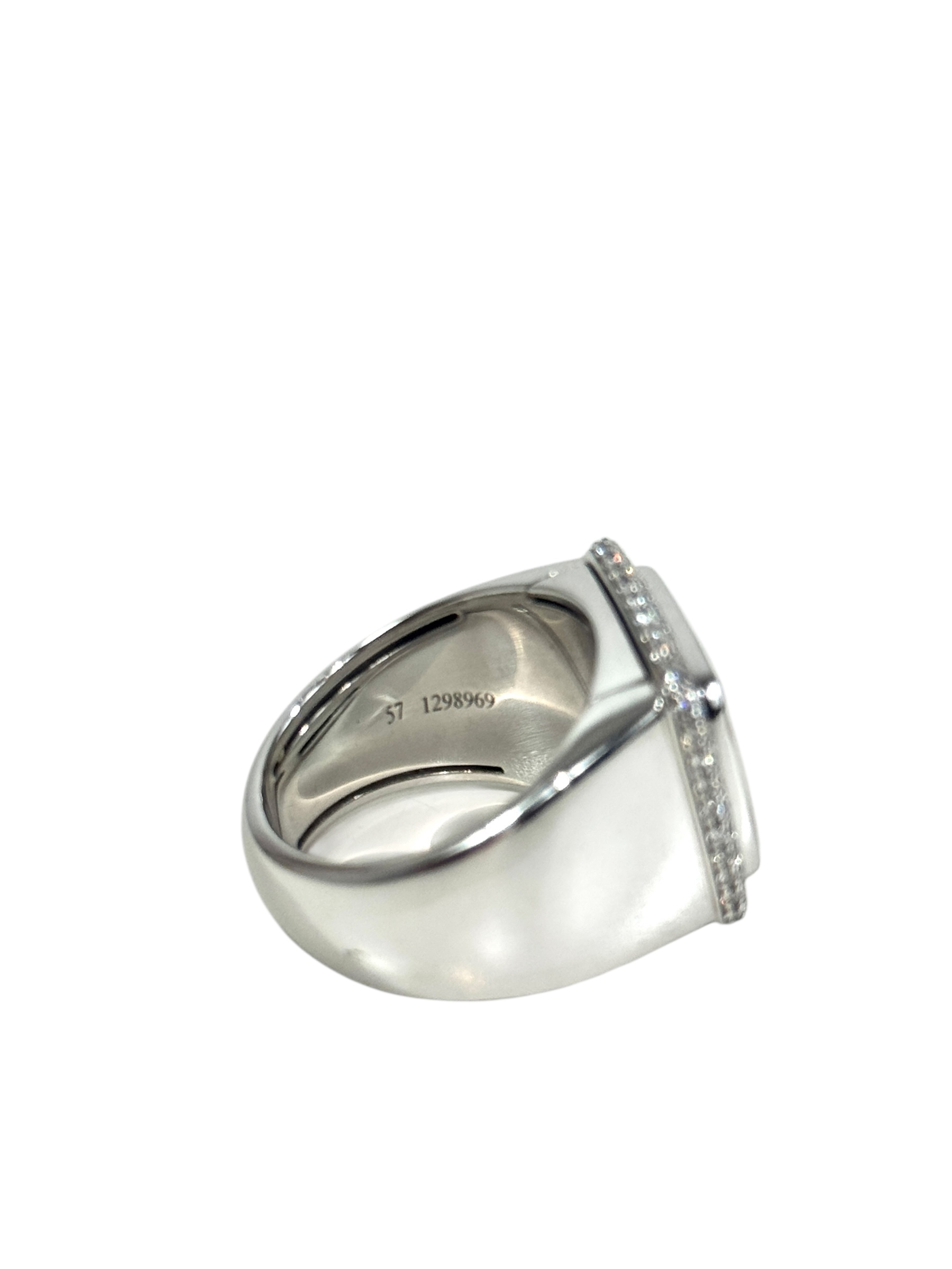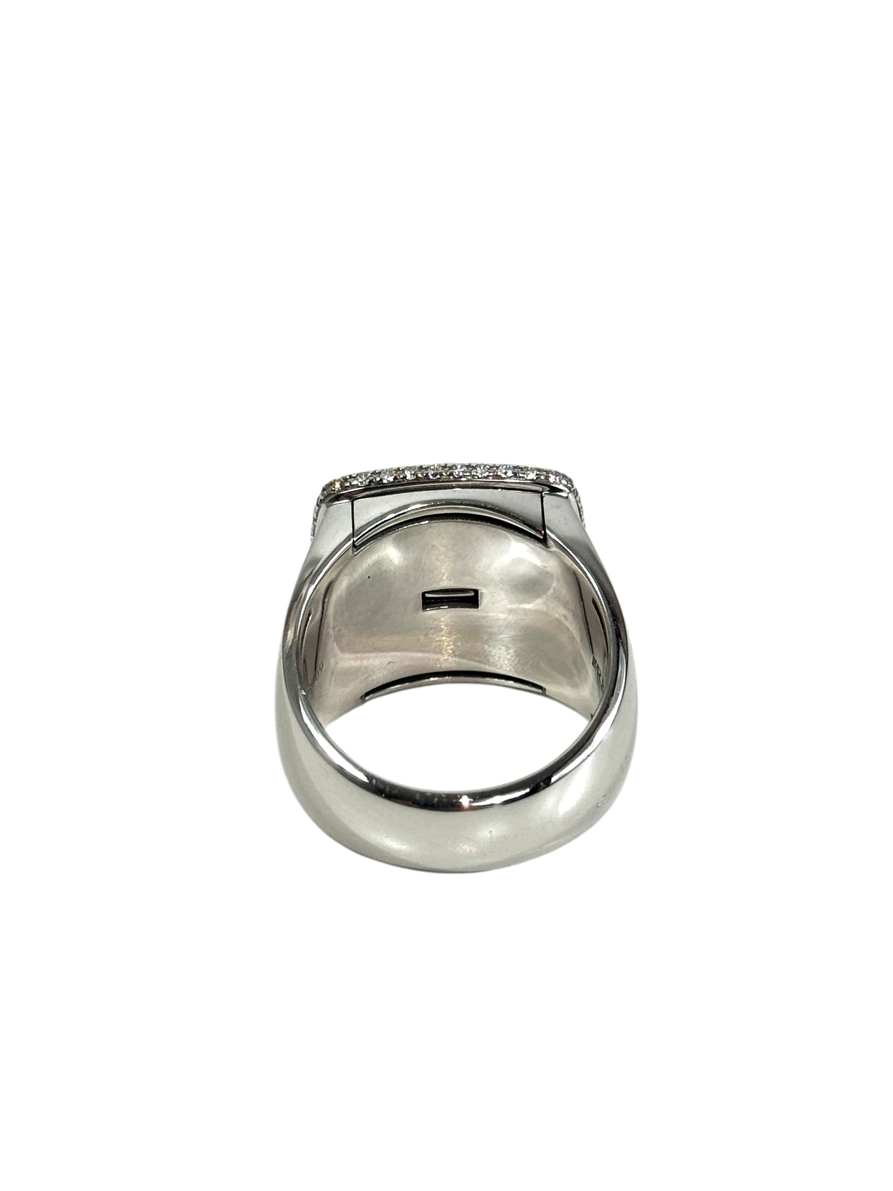 Bague « Pain de sucre » or gris, semi pavé de diamants, grand modèle, cabochon interchangeable oeil d’aigle , taille 57, poids : 18gr.
