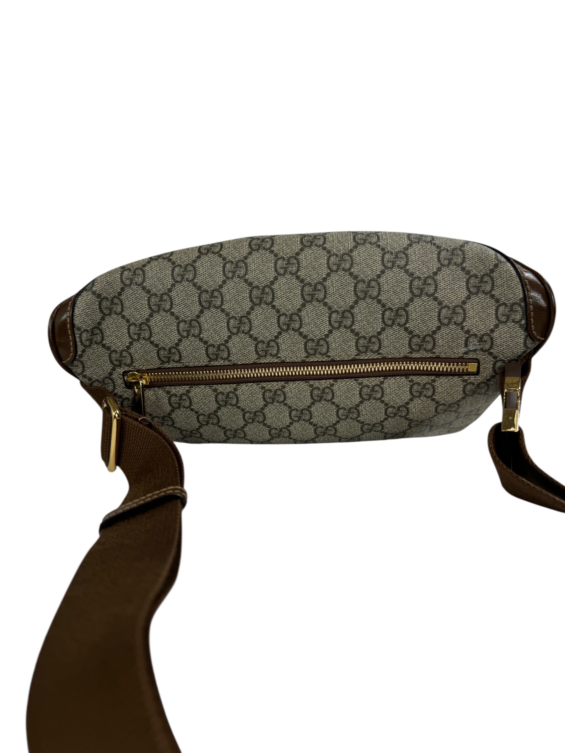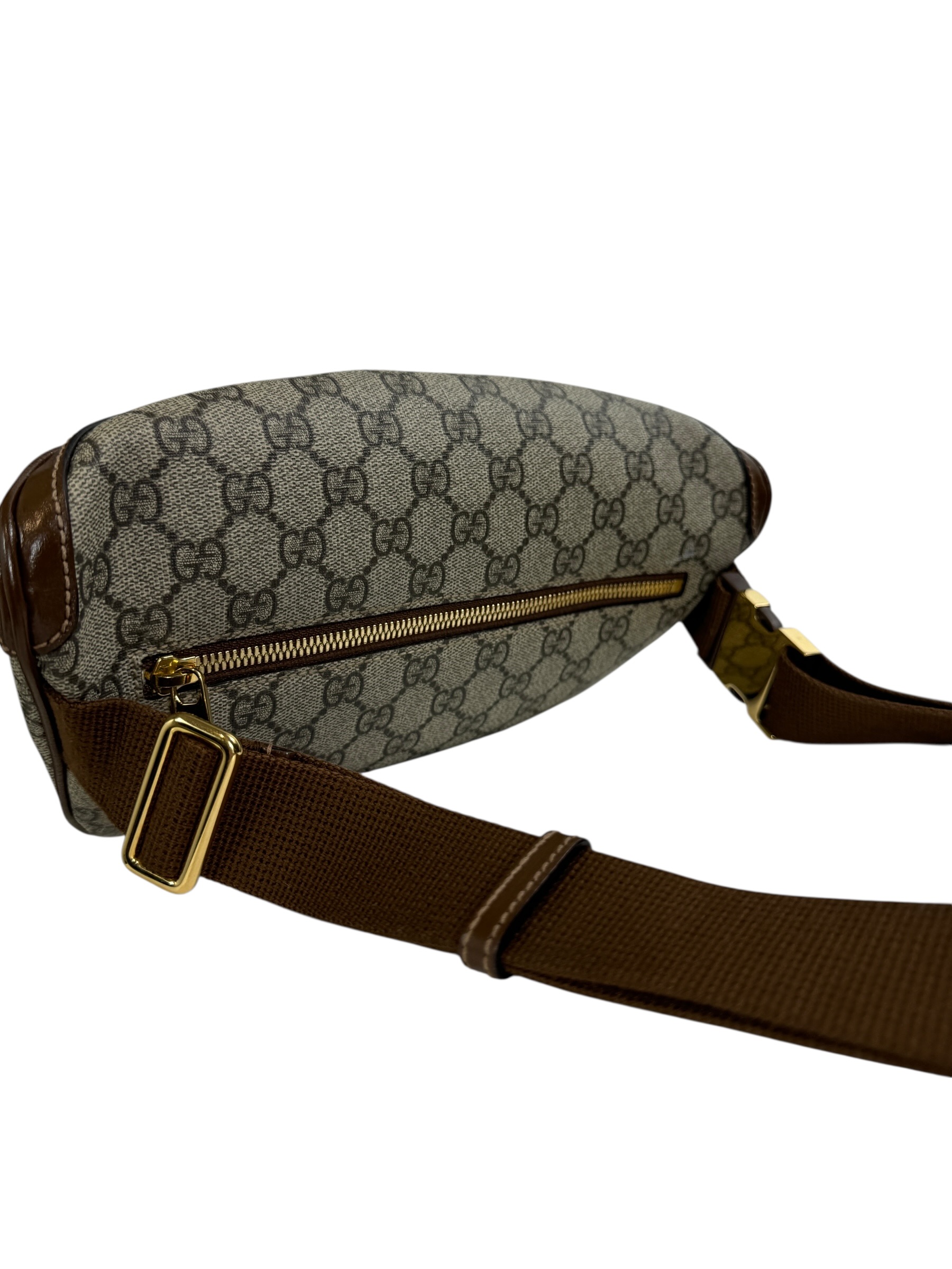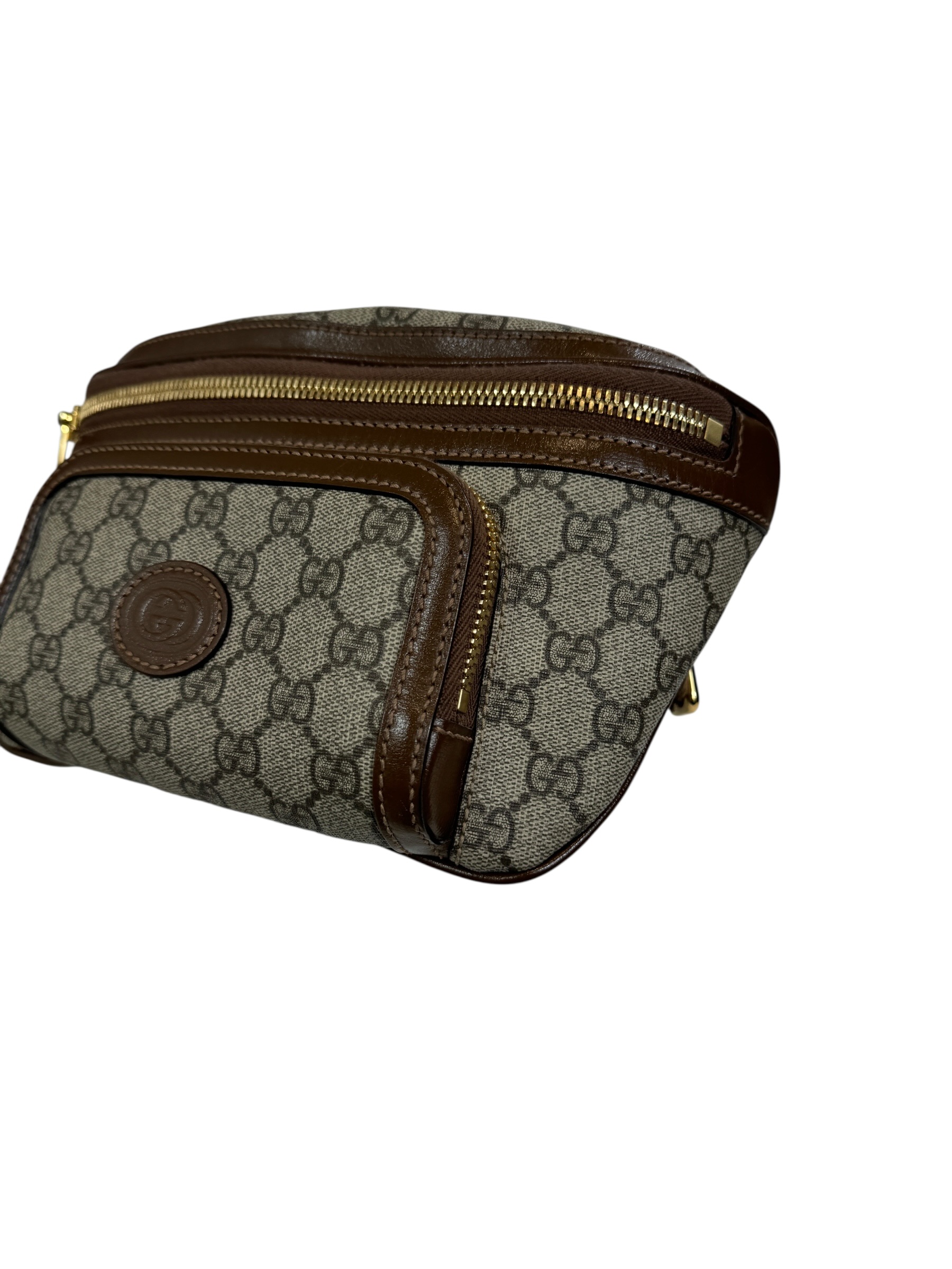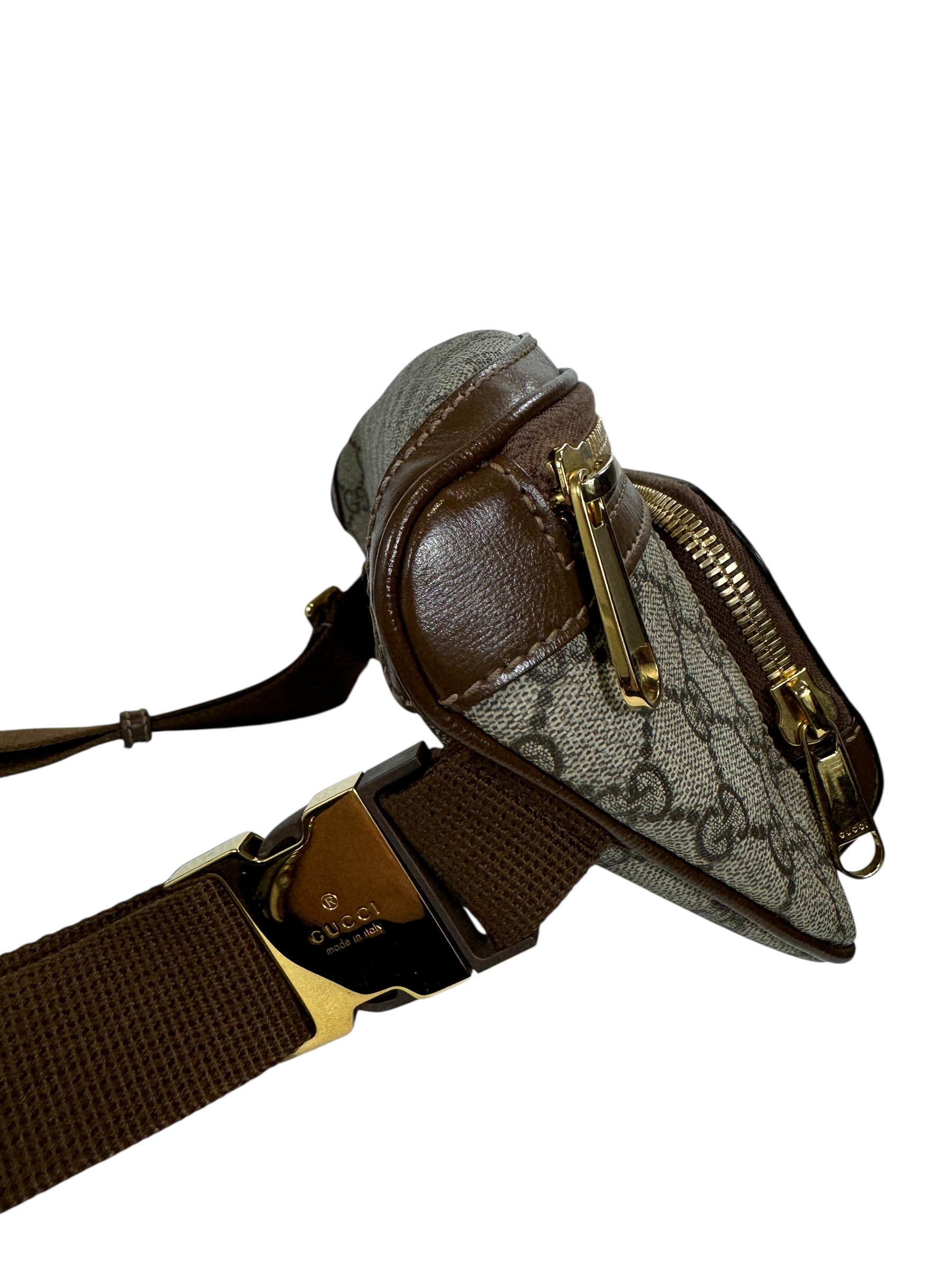 Pochette ceinture en toile enduite GG Suprême et cuir noisette, fermeture éclair, ceinture sangle.