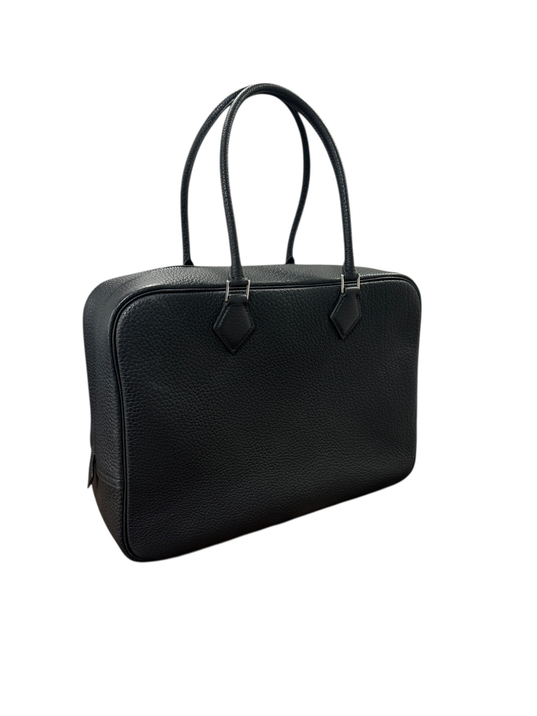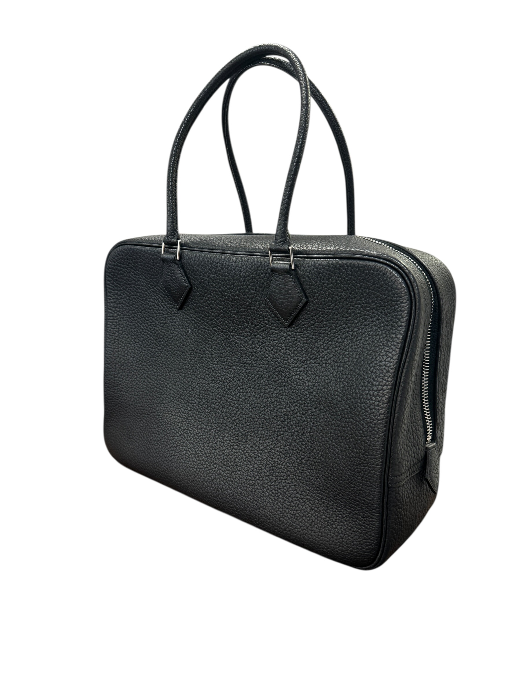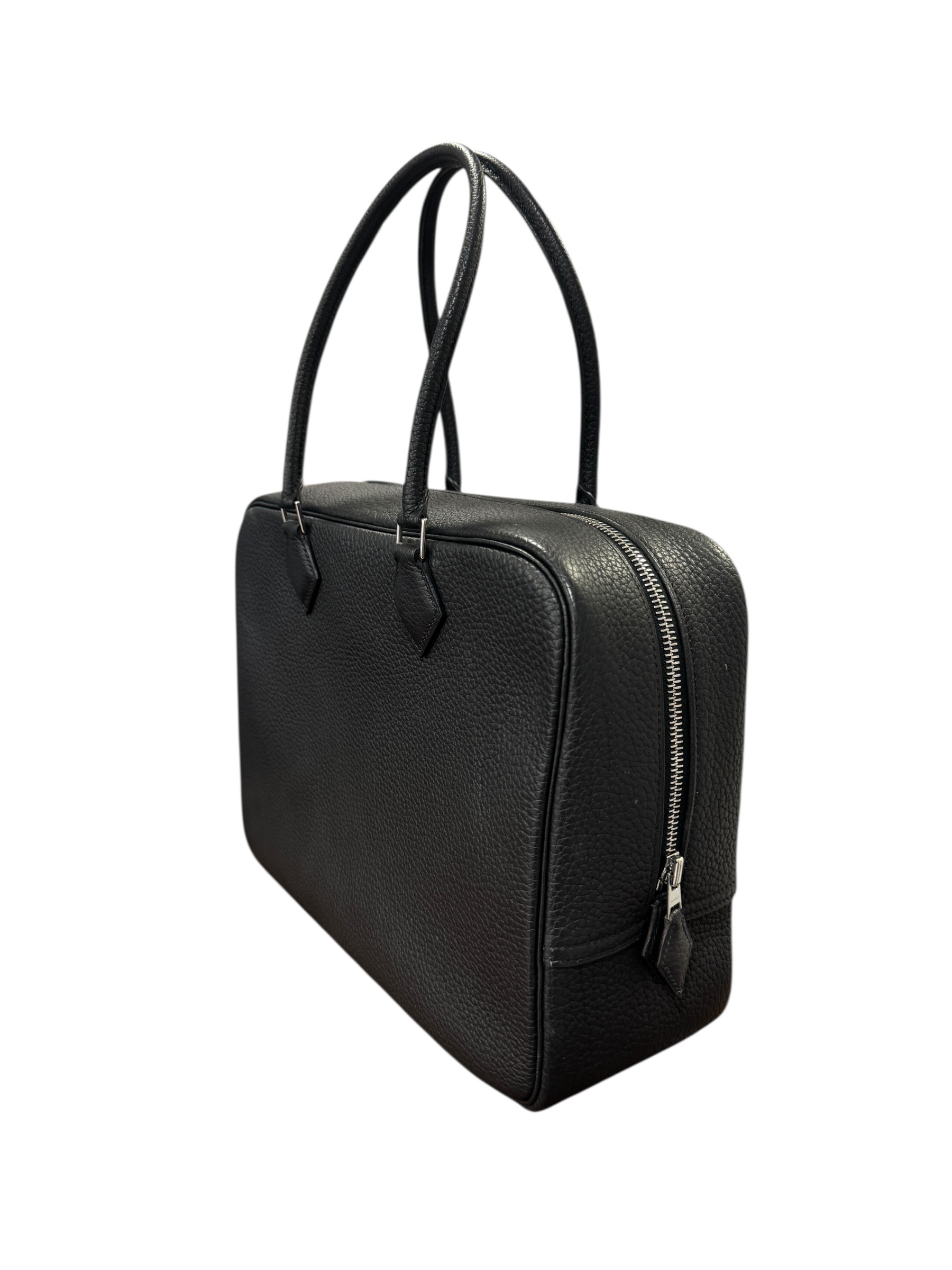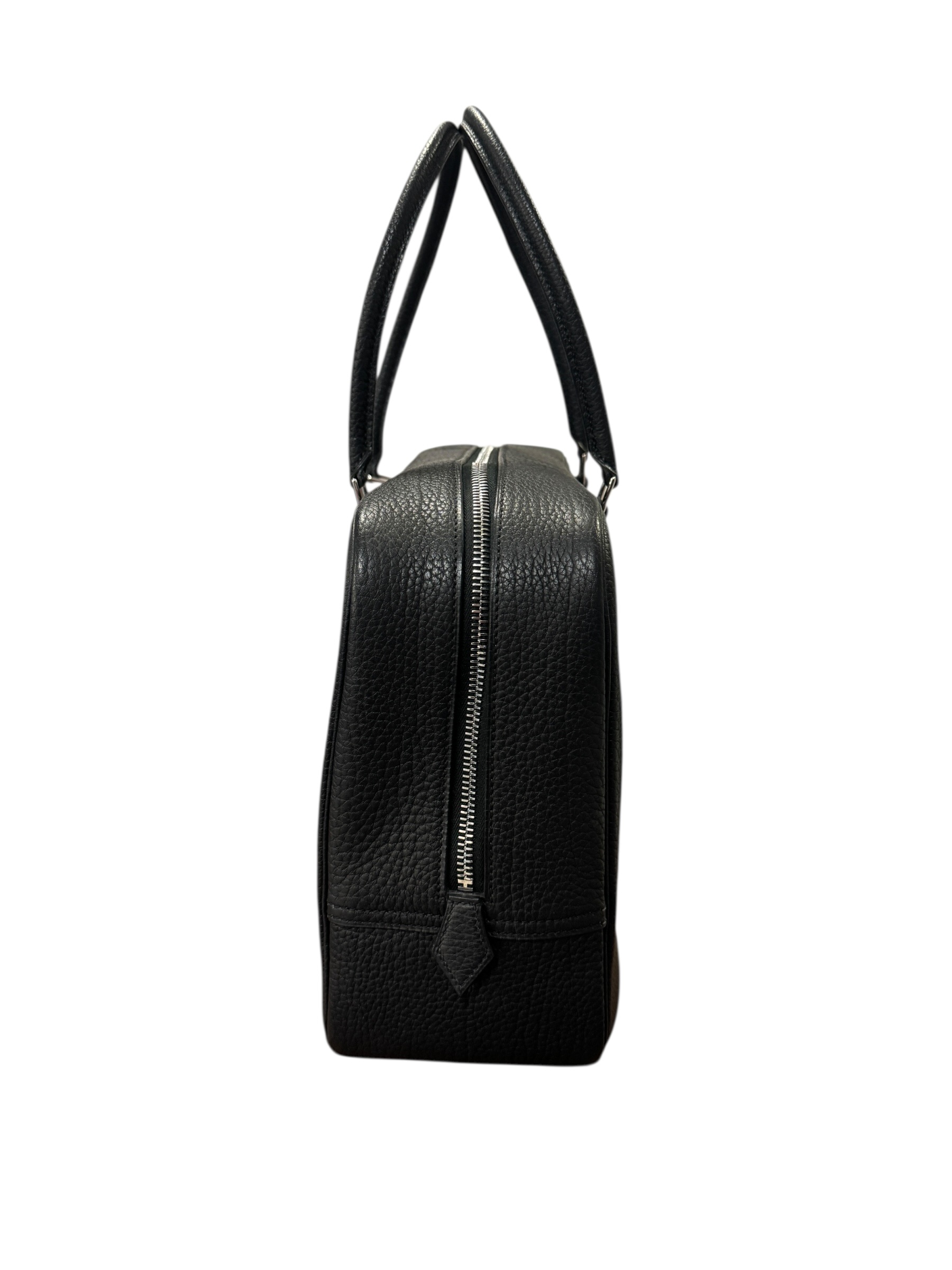 Sac « Plume » en cuir fjord noir, fermeture éclair, double anse.