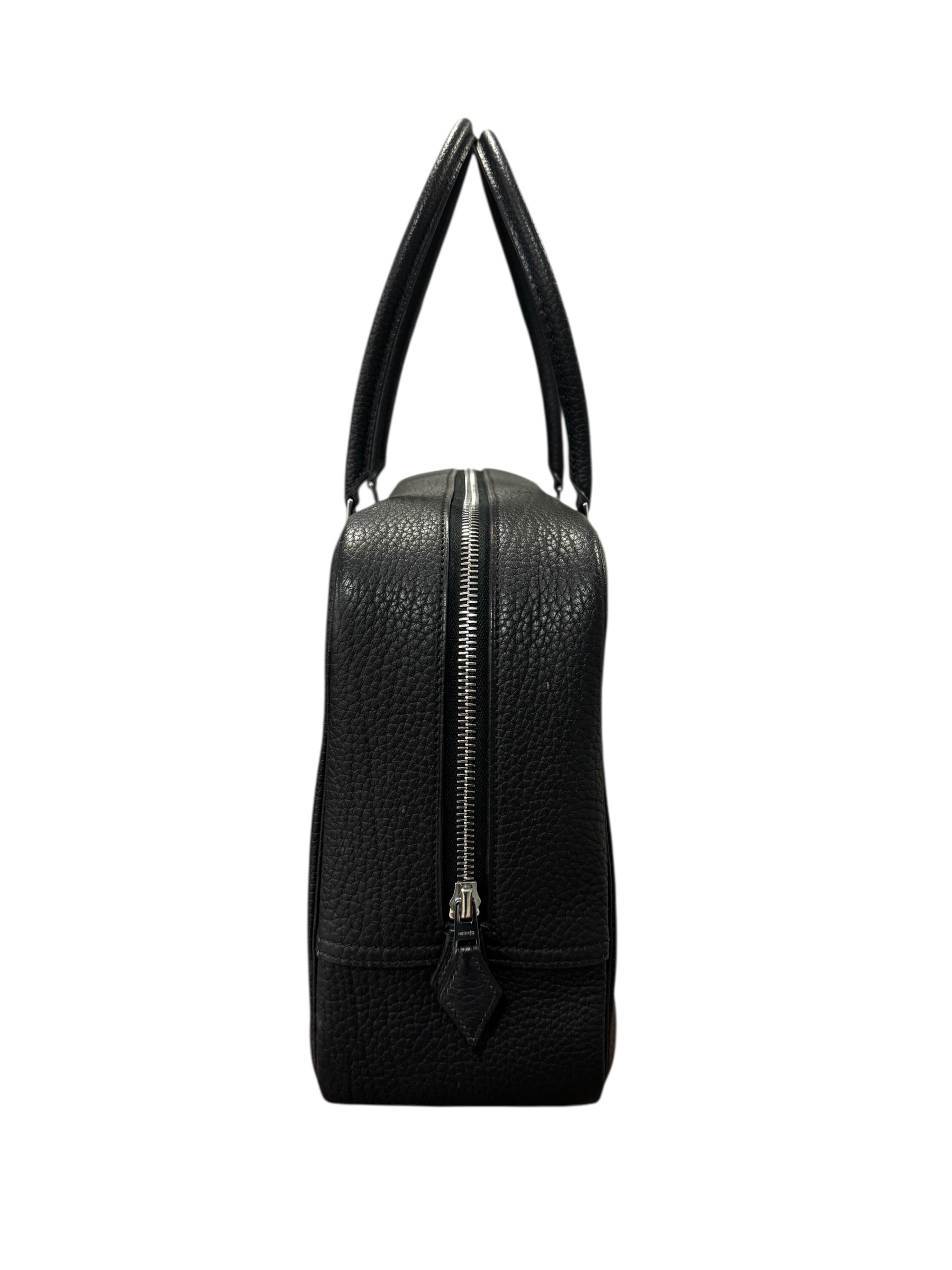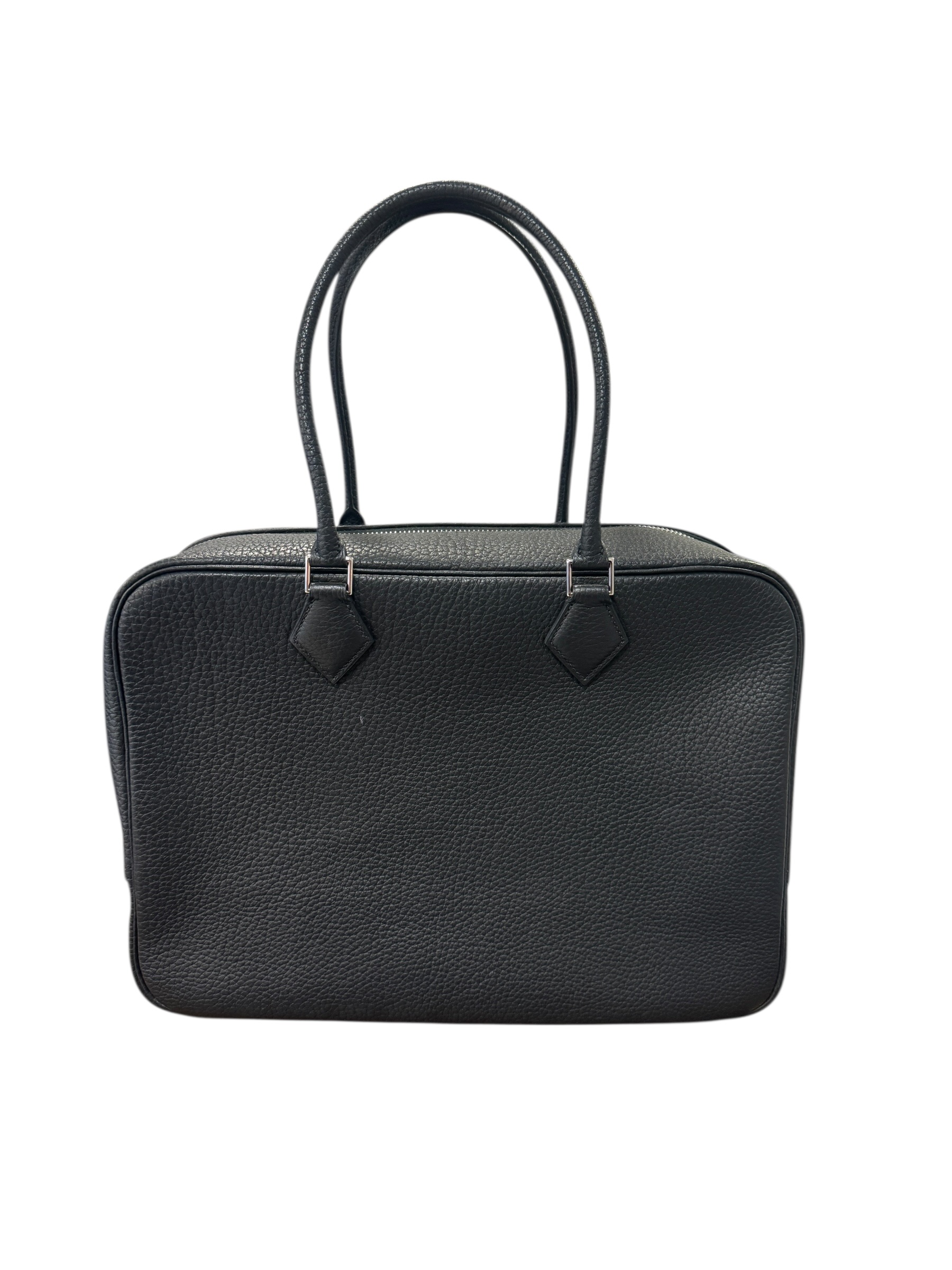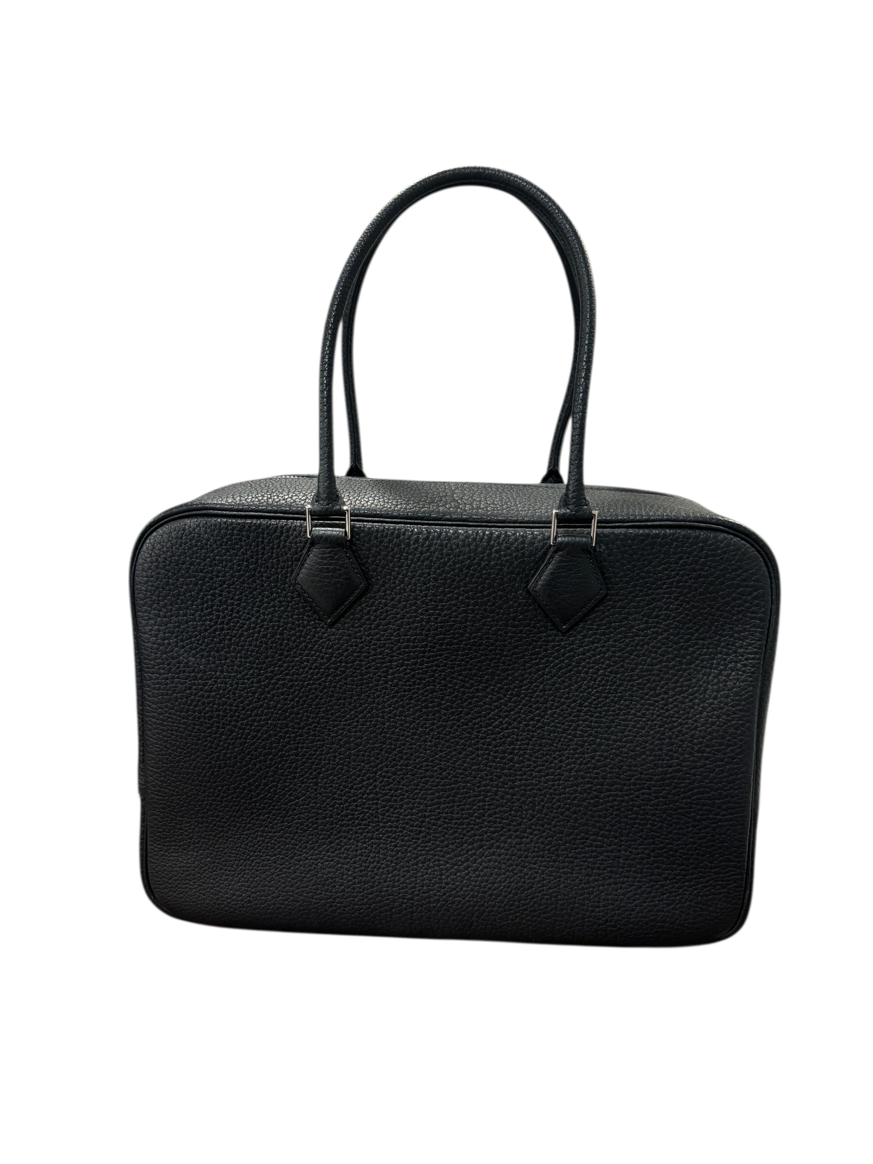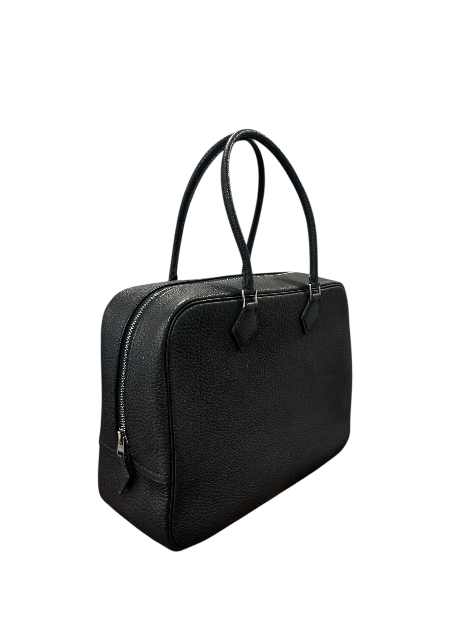 Sac « Plume » en cuir fjord noir, fermeture éclair, double anse.