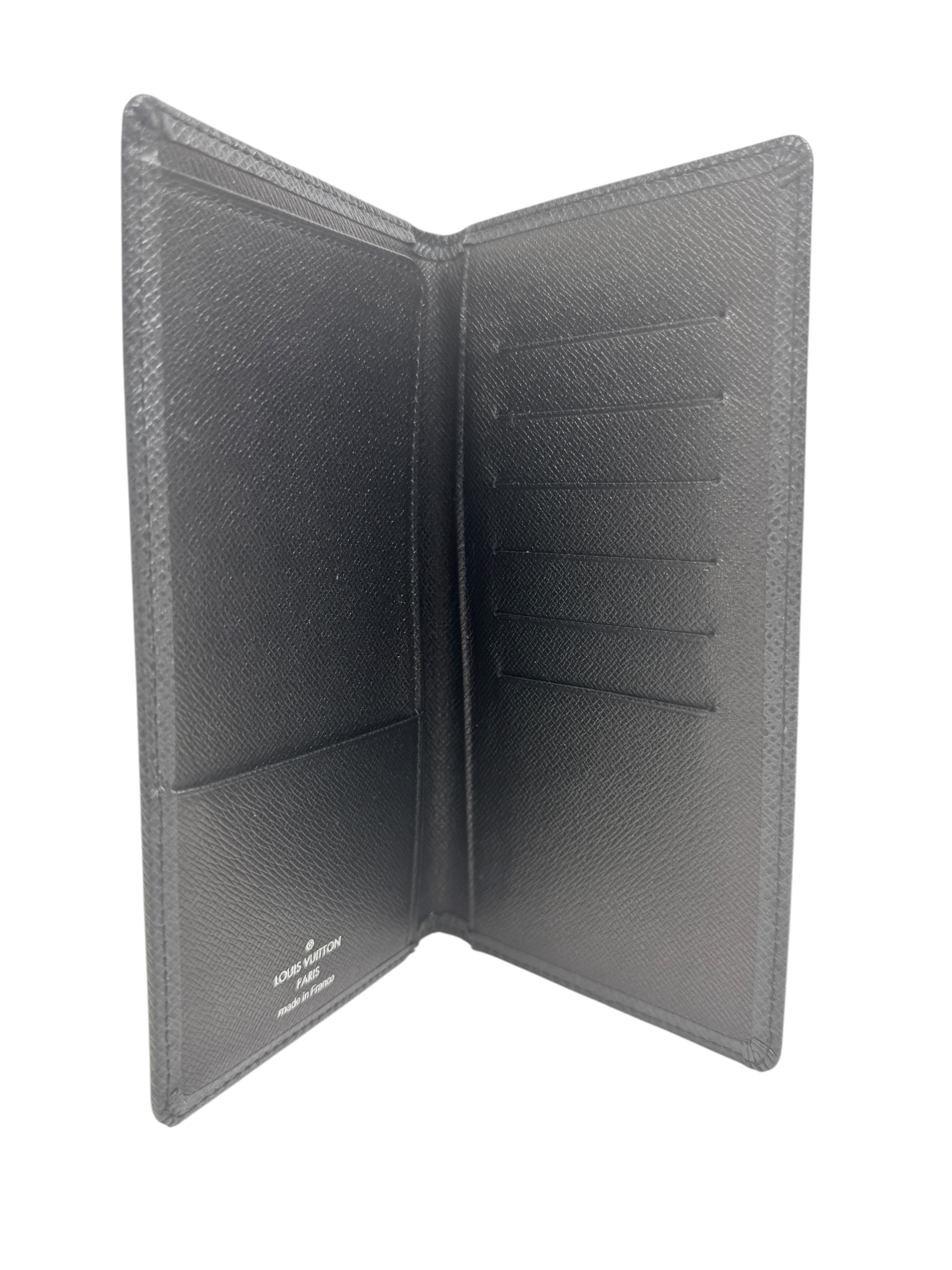 Portefeuille long en cuir Taiga de couleur ardoise, emplacement pour sept cartes et emplacement pour billets.