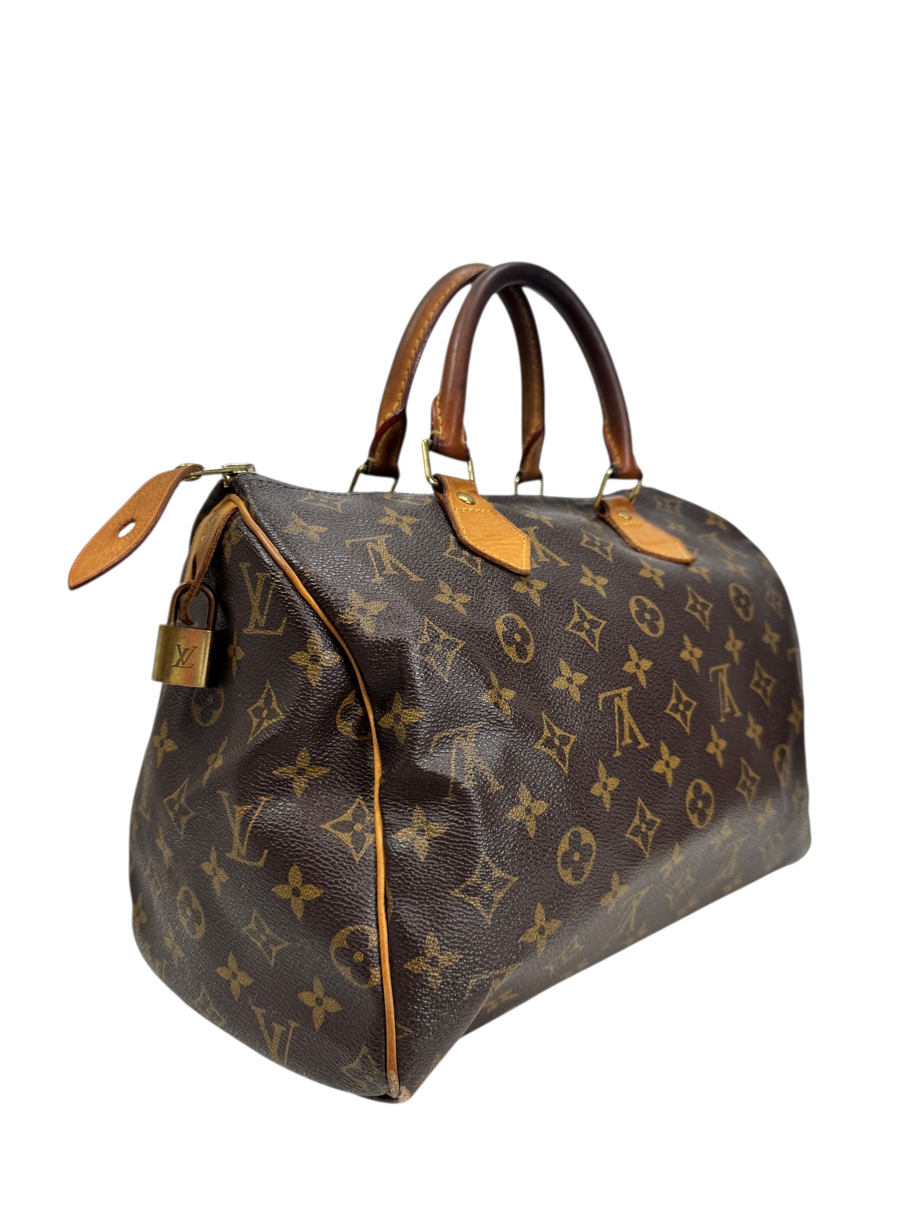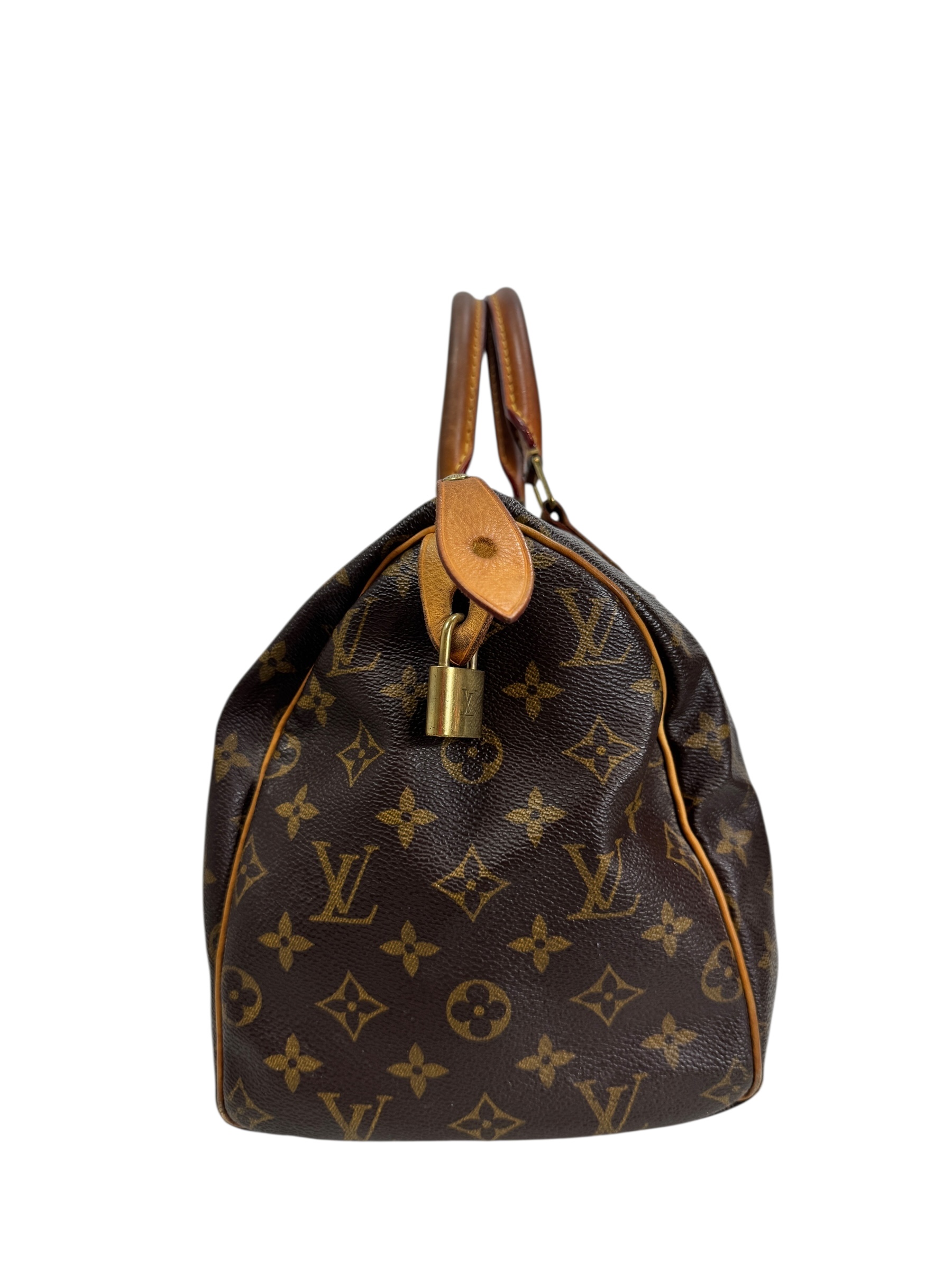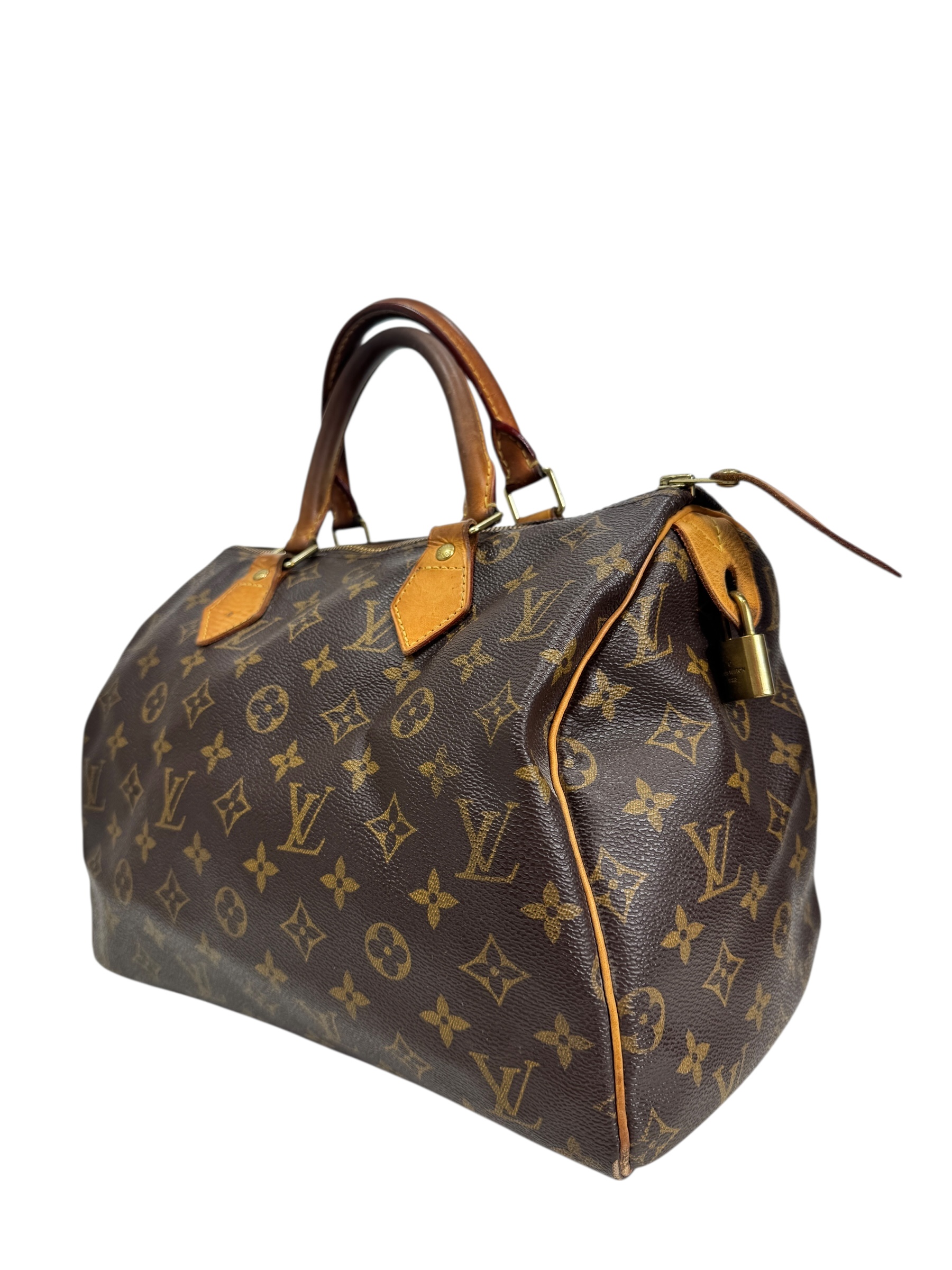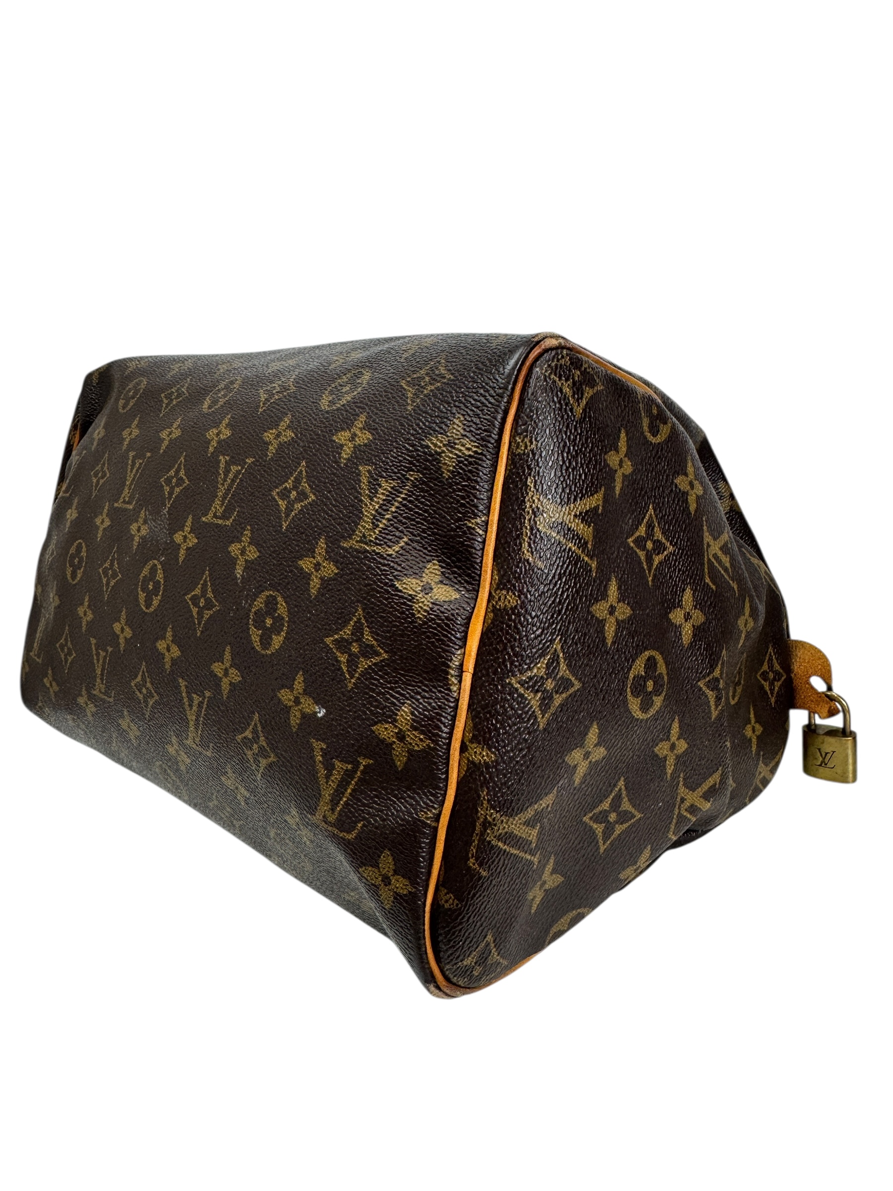 Sac «Speedy» 25cm en toile Monogram, fermeture éclair à double curseur, double poignée.