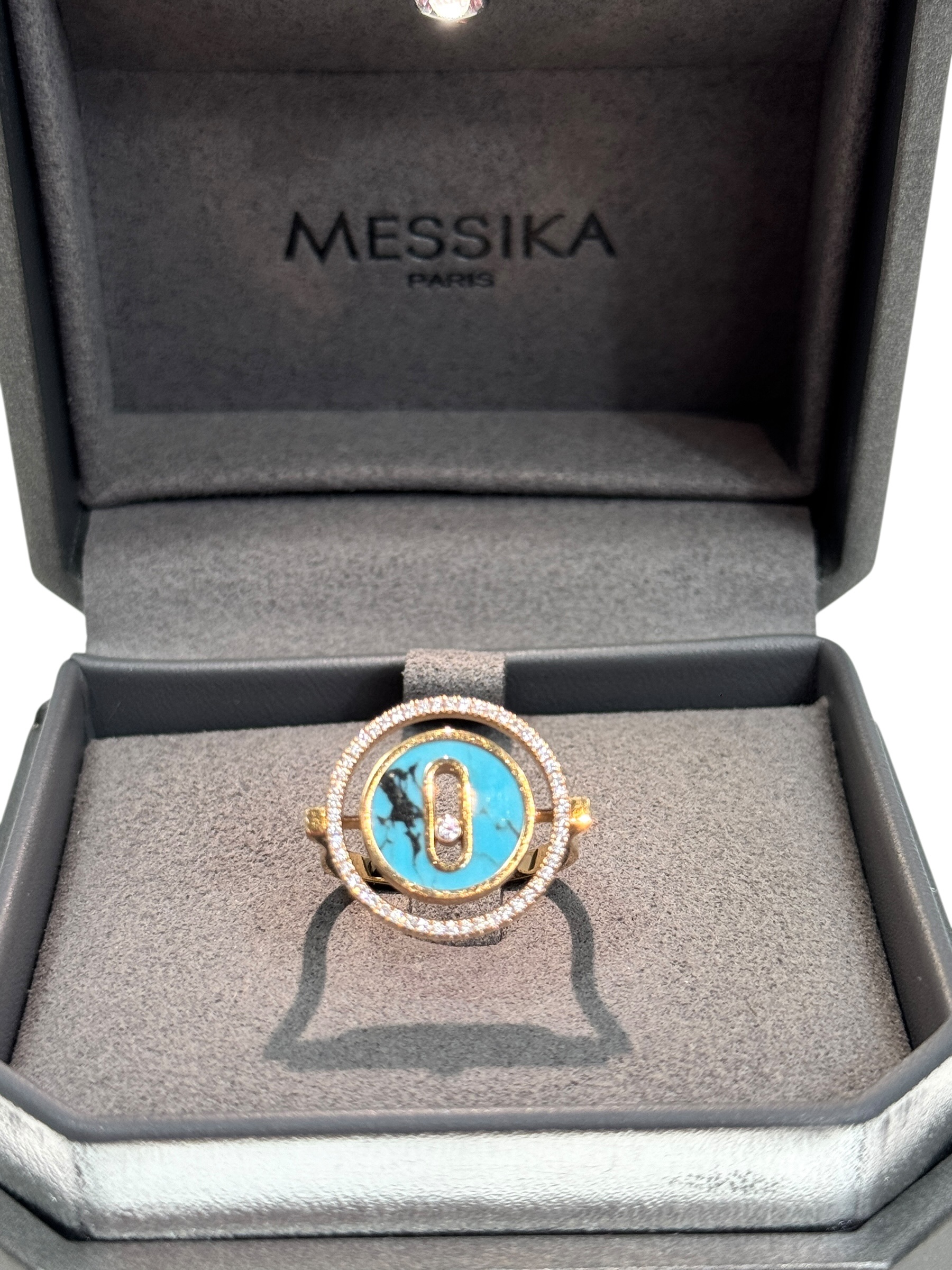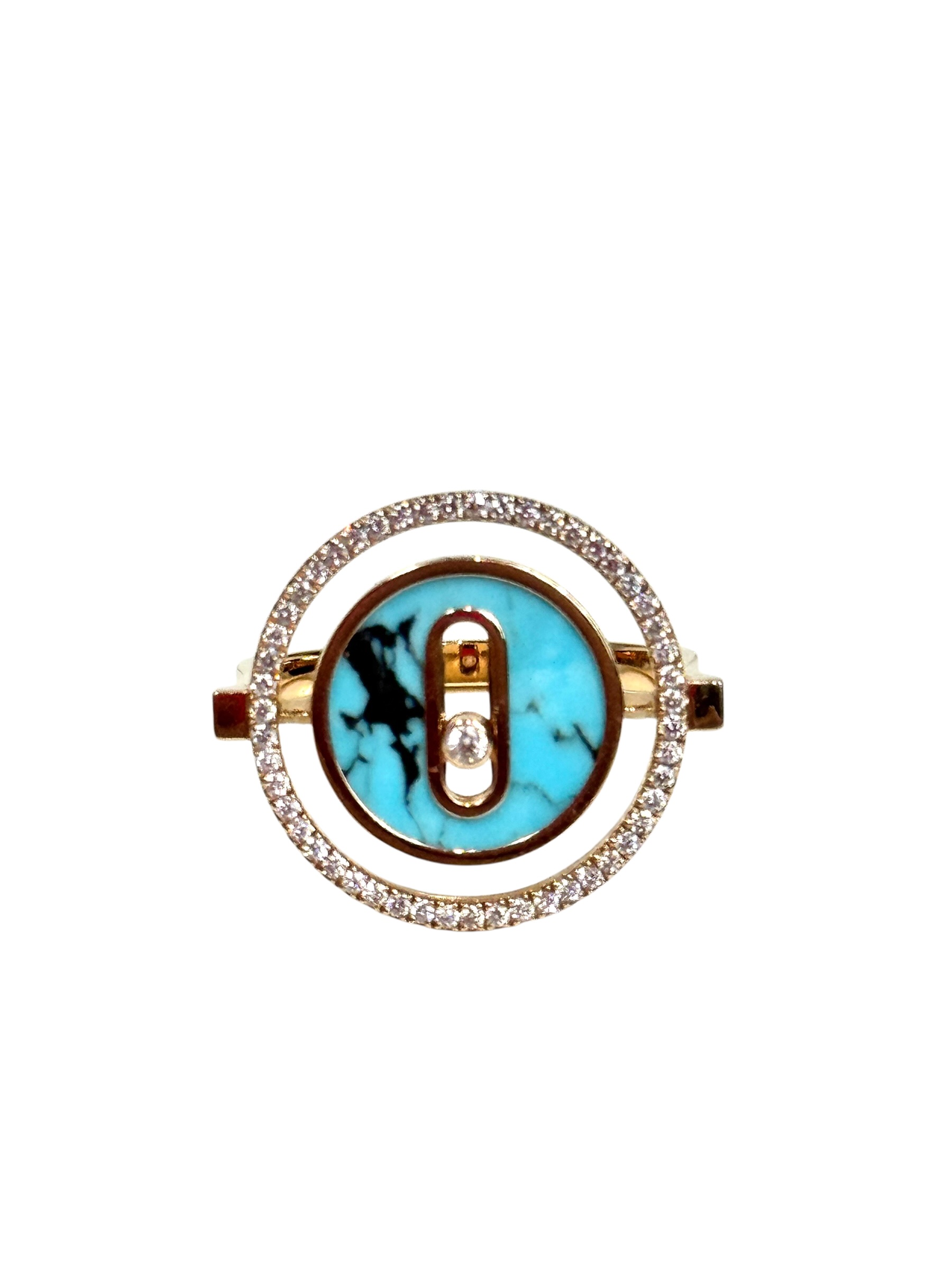 Bague « Lucky Move » en or rose 750 millièmes sertie de diamant, Turquoise.Taille 51.